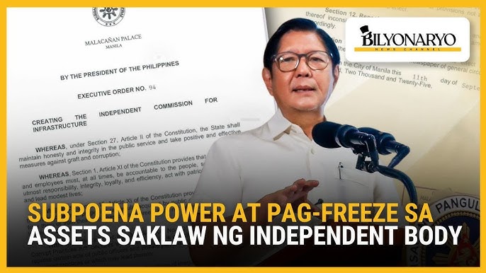 "INDEPENDENT COMMISSION ON INFRASTRUCTURE O EO 94". ANG PANGULONG MARCOS AY NAGCREATE NG INDEPENDENT INVESTIGATING BODY NA MAGIINVESTIGATE SA MGA MAANOMALYANG INFRASTURCTURE PROJECTS SA BANSA PARTIKULAR ITONG KORAPSYON SA FLOOD CONTROL PROJECT.